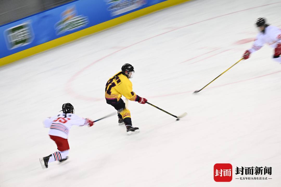 2月21日,第十四届全国冬季运动会冰球项目青年组比赛进入白热化争夺,四川冰球小将们在场上与对手展开激烈碰撞,角逐小组出线资格。